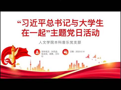 2023年6月14日下午4时,德赢vwinac米兰合作伙伴本科音乐党支部线上开展了“习近平总书记与大学生在一起”主题党日活动。本次会议由孙雨函、张兆悦、闻茜和王杉杉担任领学人,支部全体同志参与活动。