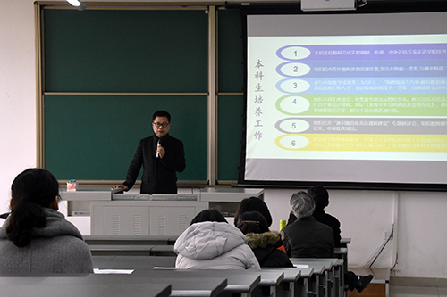 沈如泉副院长就本科教学工作、本科生培养、研究生培养三个方面总结一年来的工作。他介绍了以本科教学评估和青年教师教学竞赛为契机,推进学院本科教学管理规章制度建设与落实、教学学风建设;组织本科生座谈会,建立教学检查通报制度等工作;着重强调了研究生培养中研究生发表学术论文规定修订的备案递交、组织新增学位点申报填表工作、启动学位授权点合格评估工作、新增中国语言文学一级学科博士点学位论文网上平台送审、首批博士申请考核校内试点单位,以及研究生招生、培养、评奖各环节等方面工作落实情况。他就本年度学院教学工作中还存在的问题与不足之处提出具体的改进措施。
