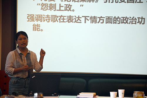 首先上场的是中文系周芳老师,她讲授的主题是中国古代文论。周老师围绕着《论语》中“诗可以怨”的表述并引用王国维、鲁迅等人的评论以及作品,对此进行了深入的讲解。