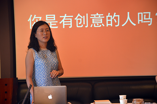 紧接着,传播学系的黄昕恺与朱洁老师分别就“渠道营销:贸易促销与协同营销”与“创新能力基础训练”的主题展开教学展示。朱老师在“课堂”上与大家积极展开互动,通过折纸飞机、画画等方式进行“破冰训练”,并阐述了从打开思路到进入状态再到专业提升的教学模式,现场气氛活跃。