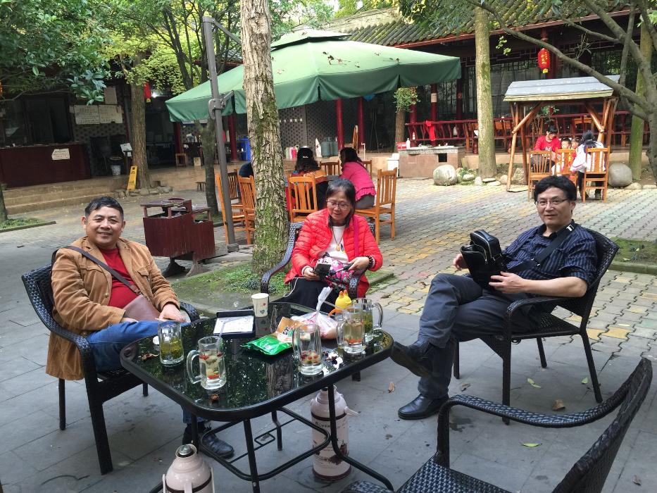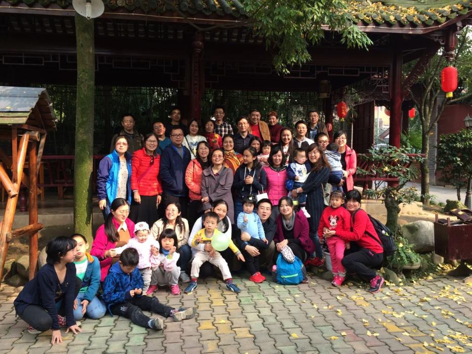 步行不久,就见一座题名“光严禅院”的古刹映入眼帘,此即当地人俗称的“古寺”。寺院依山而建,错落有致。寺庙四周是近千亩成片的参天古柏、古楠、古杉、古银杏等珍稀树木,可谓天然大氧吧,的确是一处宜于登临游览、休养放松的理想场所,进入山门,边登山,边参访寺内文物古迹。带着孩子出游的老师顺便给子女普及解说与古寺相关的历史文化知识,热爱摄影的老师则纷纷举起手机、相机按动快门,捕捉初冬美景,留住美好回忆。午后,登山结束,工会为参加登山活动的老师们发放了小奖品。随即全体下山到街子古镇午餐。餐后在古镇自由活动,有的老师点杯清茶,看川剧表演。有的老师携儿带女,划船玩水。有的走街串巷,抓拍风景。下午四点半,活动结束,全体人员集体乘车返回。