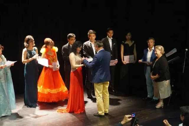 德赢官网音乐系杨树莉教授应北京国际喜歌剧中心邀请,于2015年7月17日-8月8日赴意、法参加“丝绸之歌-2015中意法歌剧艺术节”展演活动,并在歌剧节期间出演了普契尼的歌剧“波西米亚人”(又名“艺术家的生涯”)和两场歌剧作品音乐会。此次演出获得了法国喀纳科城市市长Jaque Bruno颁发的歌剧作品优秀演唱奖,得到当地主流媒体的广泛关注。