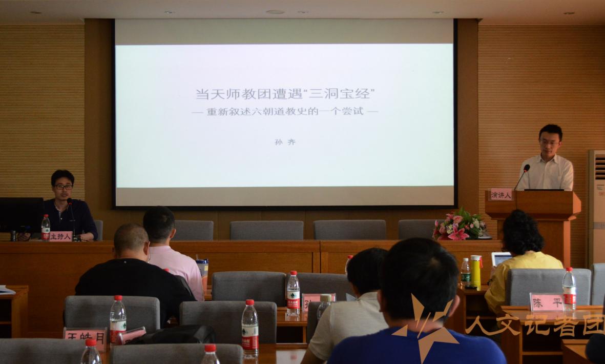 在为在坐学者嘉宾介绍完中古道教史的近况后,孙齐又介绍了天师道的祭酒体制及其危机,他表示,如同世间政府一样,天师道祭酒体制得以维系的核心并非表面上的宗教活动,而是以基于户籍制度的租税体系为共根本,并举例南北朝初期的寇谦之的《老君音诵戒经》和陆修静《道门科略》,都对祭酒体制的腐化作了的尖锐批评。紧接着他从天师道传统与隐修传统的汇合、灵宝经理念的引入、官方对道观体制的承认三方面对道观体制的出现进行了阐释。在讲到道观体制的扩展时,他提到以建康崇虚馆为发端的道观体制有四个基本属性,即出家主义、群体性、公有性和官方性,他还特意提到道观体制与祭酒体制是一条线上的转化,而不是两条线的并行。紧接着又从道观的地理分布、经济来源两方面详细的介绍了道观体制的扩展。在谈及中古道教体制变迁的相关问题时,他从体制转型中的几个侧面、祭酒体制与道观体制两种体制的重叠与交错以及中古道教是否存在“宗派”三方面进行了相关阐述。