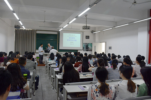 著名语言学家陆俭明、马真来德赢官网讲学10月20日下午,北京大学教授、博导、世界汉语教学学会会长、著名语言学家陆俭明和汉语虚词研究专家马真两位先生做客“创源”大讲堂,为交大师生带来一场关于“语言研究要探究的问题与乐趣”的讲座。